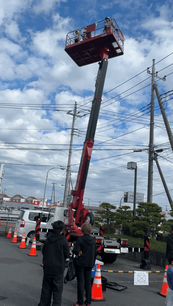 青年部「はたらく車に乗ってみよう!」では、高所作業車・パトカー・パワーショベルの
